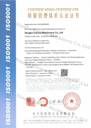 Ningbo Essence Machinery Co., Ltd. is a distinguished manufacturer, specializing in the production of pneumatic components and mist system connectors. We concentrate on the technology, as well as the innovation and application of products. Our aim is to provide customers with high-efficiency and low-consumption products, and offer a complete solution for industrial automation.